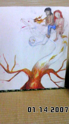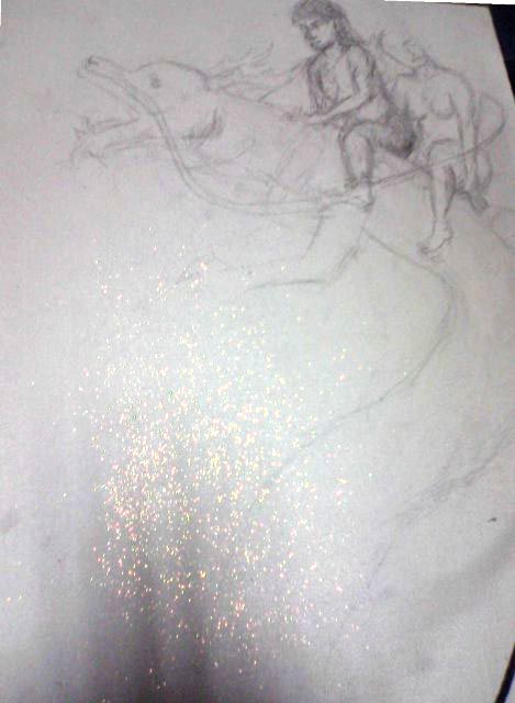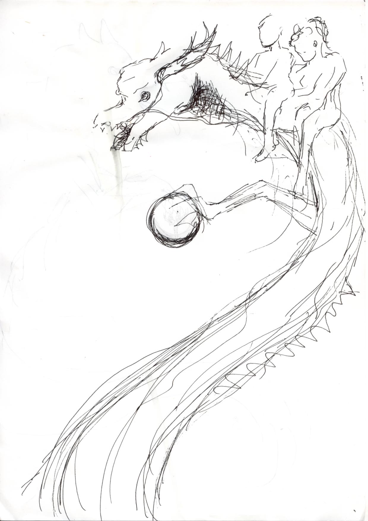 最初に画の構図を考えながらした走り描きはこんな感じでした。
